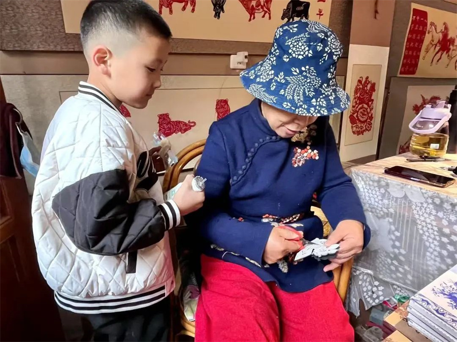 非遗在春光里跳动。剪纸艺人的剪刀下,一朵牡丹悄然绽放。锤草印花的老布,染着新采的嫩绿。跟着艺人们体验学习,把古村落的非遗技艺拓印成独一无二的纪念。