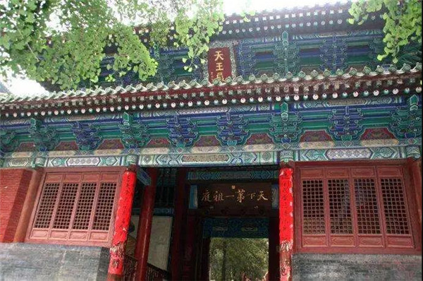 天王殿位于山门后中轴线上,是少林寺常驻院第二进建筑。清雍正十三年为寺院山门。初建于元,明、清多次整修。清雍正十三年(1735年)少林寺大修时,在此殿前另建一山门,原门改称天王殿。1928年被石友三焚毁,仅存月台、殿基、柱础和门槛。