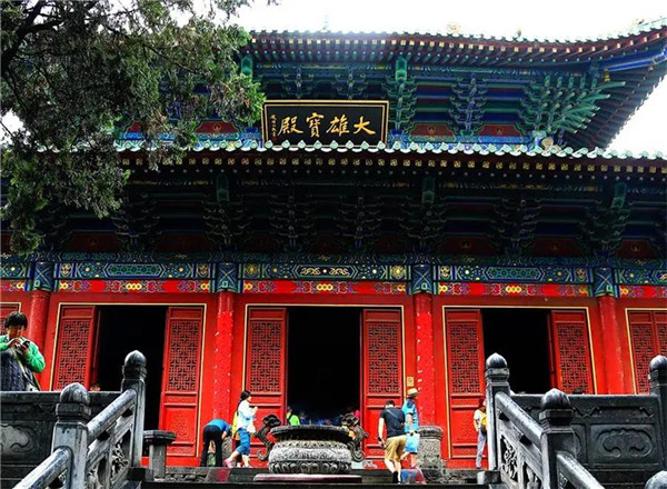 天王殿后面是一座面阔五间的重檐歇山式建筑,即大雄宝殿。大雄宝殿是整座寺院的核心建筑。