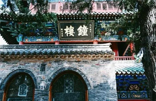 大雄宝殿前方两侧的建筑为钟、鼓二楼,东南为钟楼,西南为鼓楼,钟鼓楼分四层,高27米,巍峨雄伟,国内罕见。钟楼北部底层平台上存一残破大铁钟,是金泰和四年(1204年)所铸原物,钟上有铭,详记铸造因由。因1928年钟楼被毁,大铁钟坠地,裂为数块。钟楼内新铸有一口大铜钟,重6.5吨。