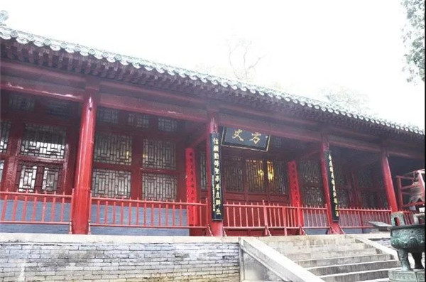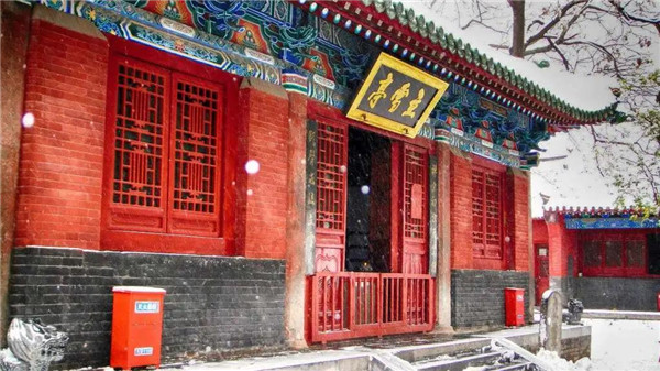 在方丈室后,有明代所建纪念二祖慧可的立雪亭。殿内悬挂“雪印心珠”四字匾额乃乾隆皇帝御题,匾额正中有“乾隆御笔之宝”的印鉴。
