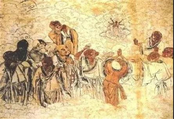 千佛殿内神龛后面北壁及东、西两壁,绘“五百罗汉朝毗卢”大型壁画。壁画高 7.5米,长42米,面积320平方米,构图严谨,形象生动,气势磅礴,世所罕见,有极高的文物研究价值。