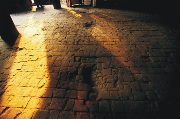 殿内地面上,尚有48个脚坑,相传为当年寺内武僧练武所踏。脚坑分布整齐,呈一条线状,这被认为是僧人刻苦练功的见证。千佛殿东侧有白衣殿,南北墙上均绘有少林拳谱壁画,壁画长约二十米,很生动地表现了少林寺和尚练拳习武的情景。