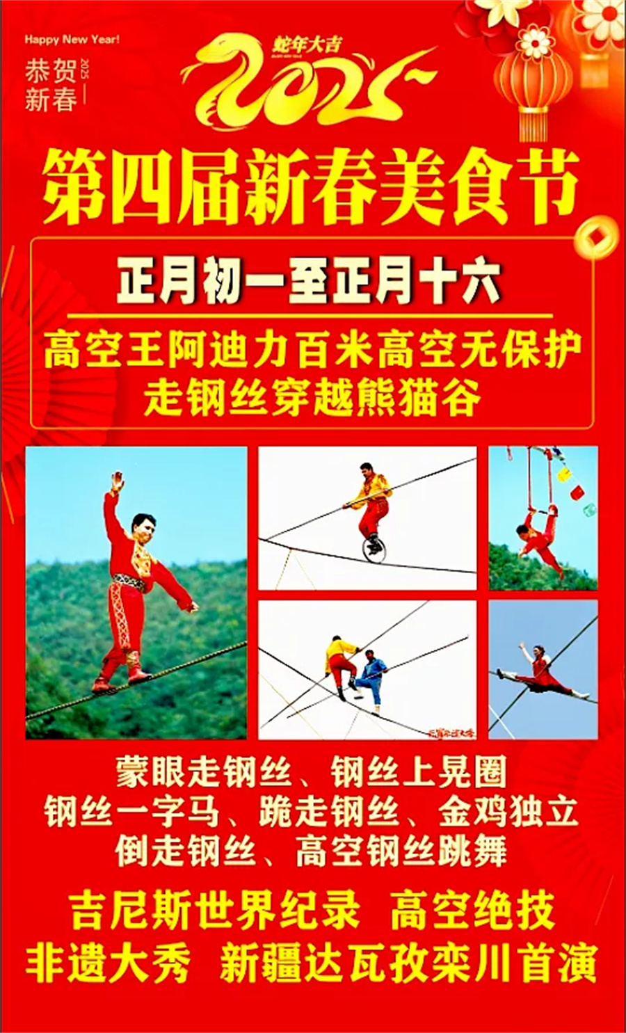 春节想撒欢?就来栾川竹海野生动物园凑个热闹。阿迪力百米高空挑战极限,免费美食任你畅享,狂欢盛宴,等你来嗨!