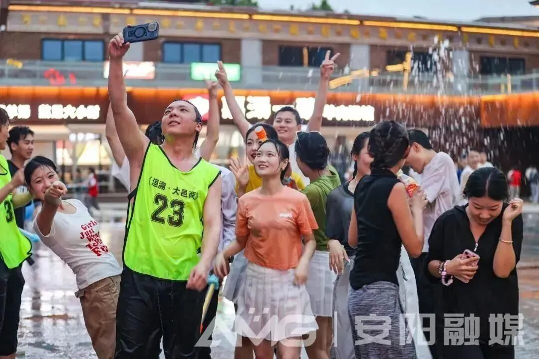 夜幕降临,洹河两岸霓虹初上。安阳殷墟考古文旅小镇,一场场夜间演艺活动正在上演。民国街区的旗袍秀、国潮音乐会、“小镇有戏”等表演吸引了大量游客。数百名游客围着水池尽情泼水狂欢,水花四溅中欢声笑语不绝于耳。“夏日限定狂欢”活动于6月20日开启,泼水狂欢、美食摊位、动感音乐与电音巴士等让游客在炎炎夏日感受别样清凉。