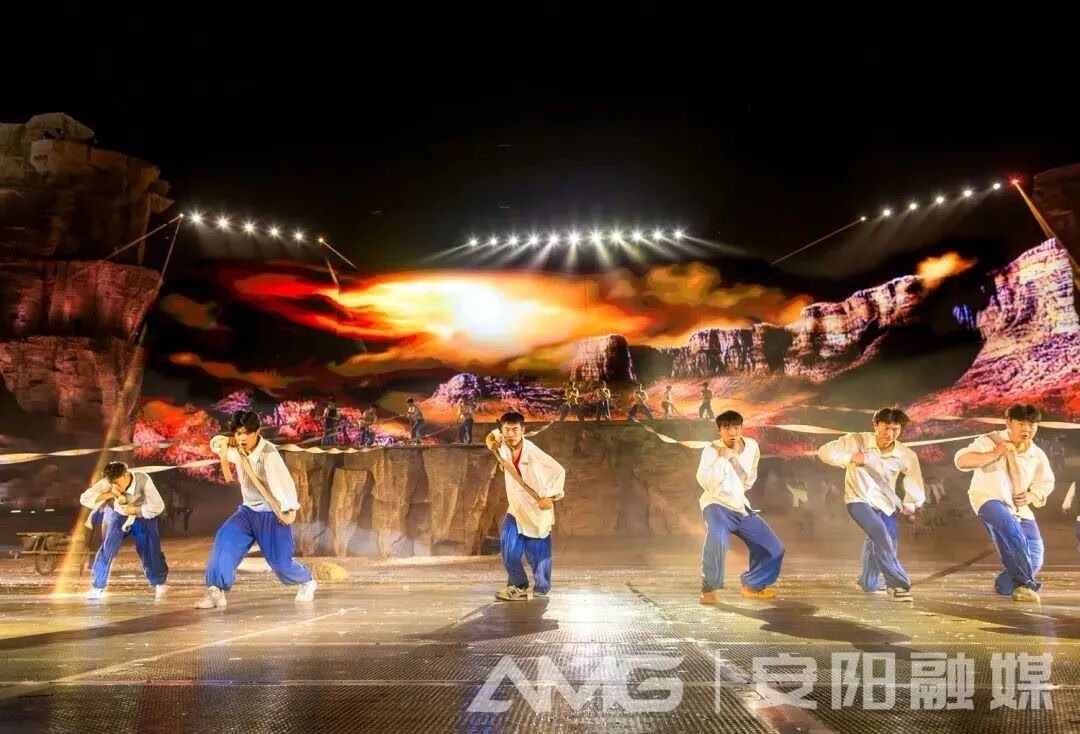 在太行山下,每天晚上8时,随着一声震彻山谷的林州号子“开山咯”——大型实景演出《太行·红日》便如约开始演出。舞台上,1000余个追光灯如银河般倾泻而下,让观众心系峭壁之上腰系绳索、挥锤凿石的“修渠人”,为他们的安全揪心;数字投影勾勒出的滔滔漳河浪花翻涌,威亚悬吊的“精卫”凌空展翅,无不令人心神激荡。