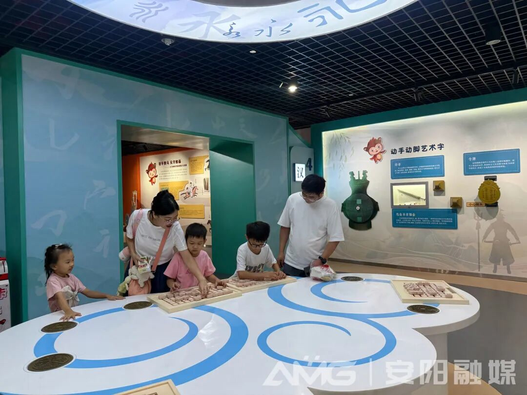 游客在中国文字博物馆“拾趣方块字——青少年科普体验展”互动体验(安阳融媒记者 李庆龄 摄)