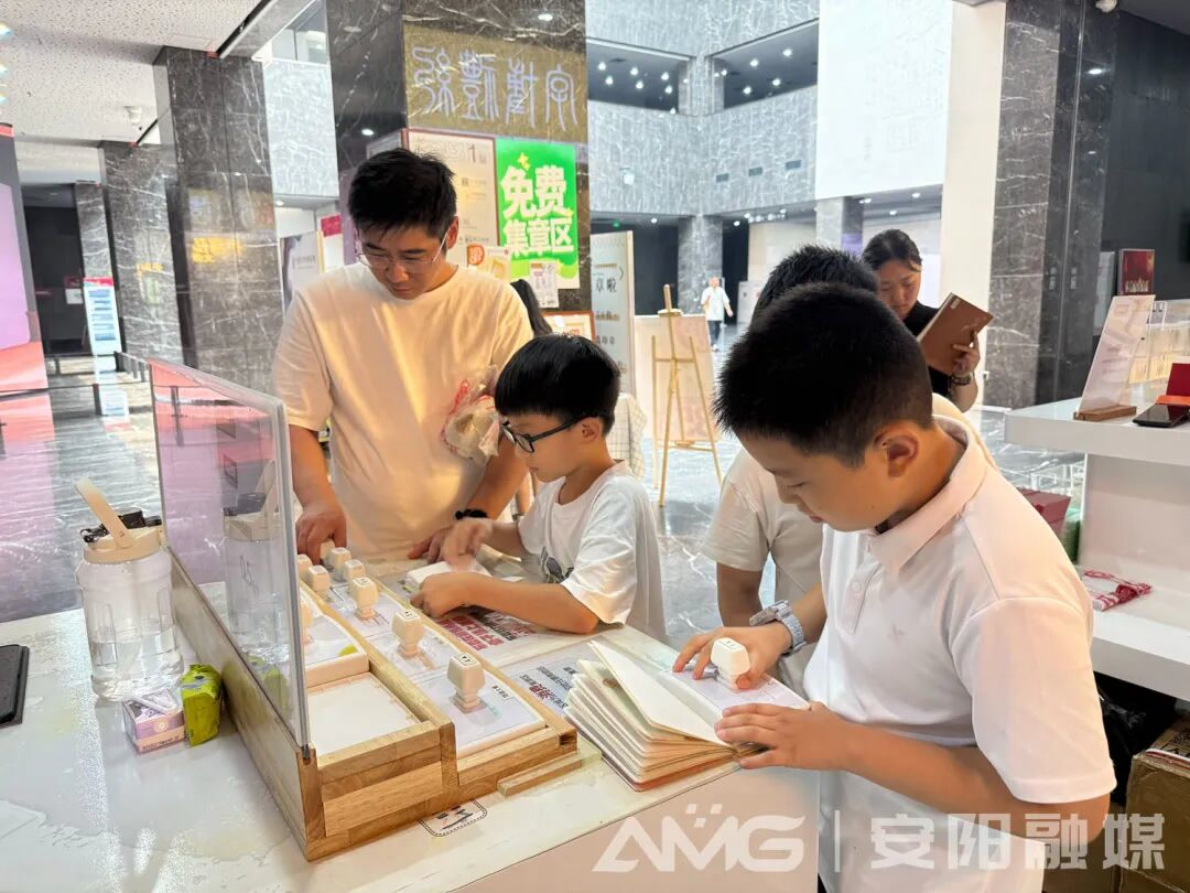 游客在中国文字博物馆打卡盖章(安阳融媒记者 李庆龄 摄)