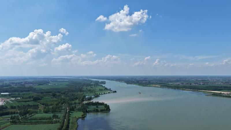 蓝天白云下的黄河故道商丘段。 融媒体记者 魏文慧 摄