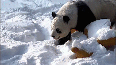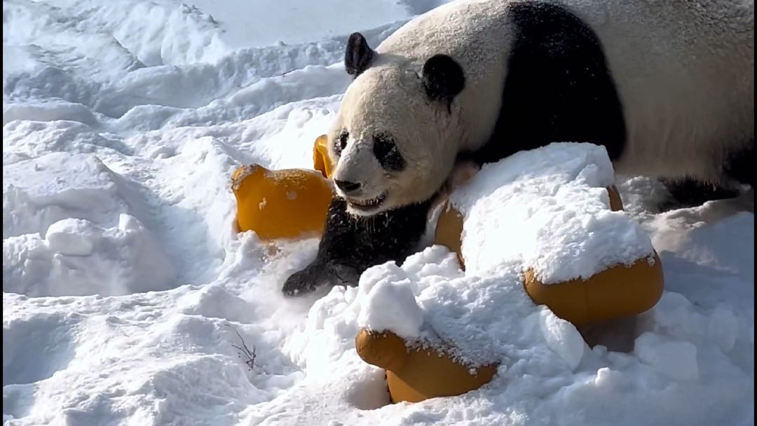 ✅ 灵岩:雪中打滚、刨雪、俯冲滑雪……化身“熊猫牌”推雪机!