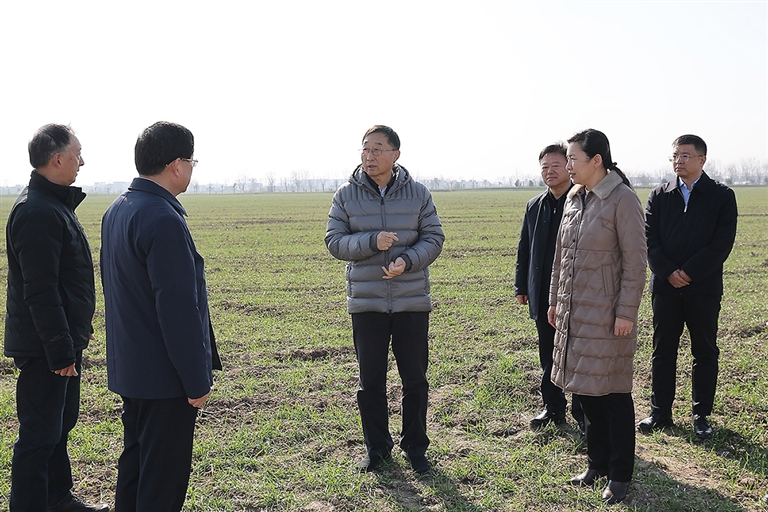 1月8日,省委书记刘宁到信阳市息县项店镇李楼村,调研了解冬小麦田间管理情况。记者 董亮 摄