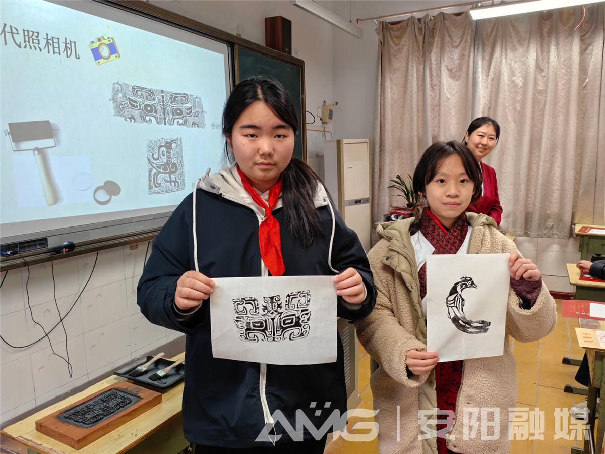 活动现场,郑州商城遗址博物院社教老师以“亳都初兴”为主题,结合郑州商城遗址考古发现,生动解读了其作为早商“亳都”的重要历史地位,勾勒出早商文明的初始轮廓。随后,殷墟博物馆社教老师,围绕中商迁徙历程与晚商鼎盛景象,借助甲骨文卜辞、殷墟遗址出土文物等实证资料,为大家印证了“从郑州商城到殷墟,商朝历史得以完整呈现”的考古共识。互动体验环节,社教老师现场指导学生书写甲骨文,拓印青铜纹饰,带孩子们深度感受汉字与商代工艺的精湛与厚重。